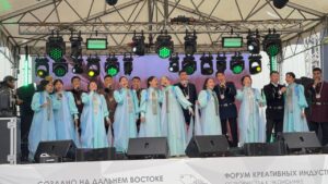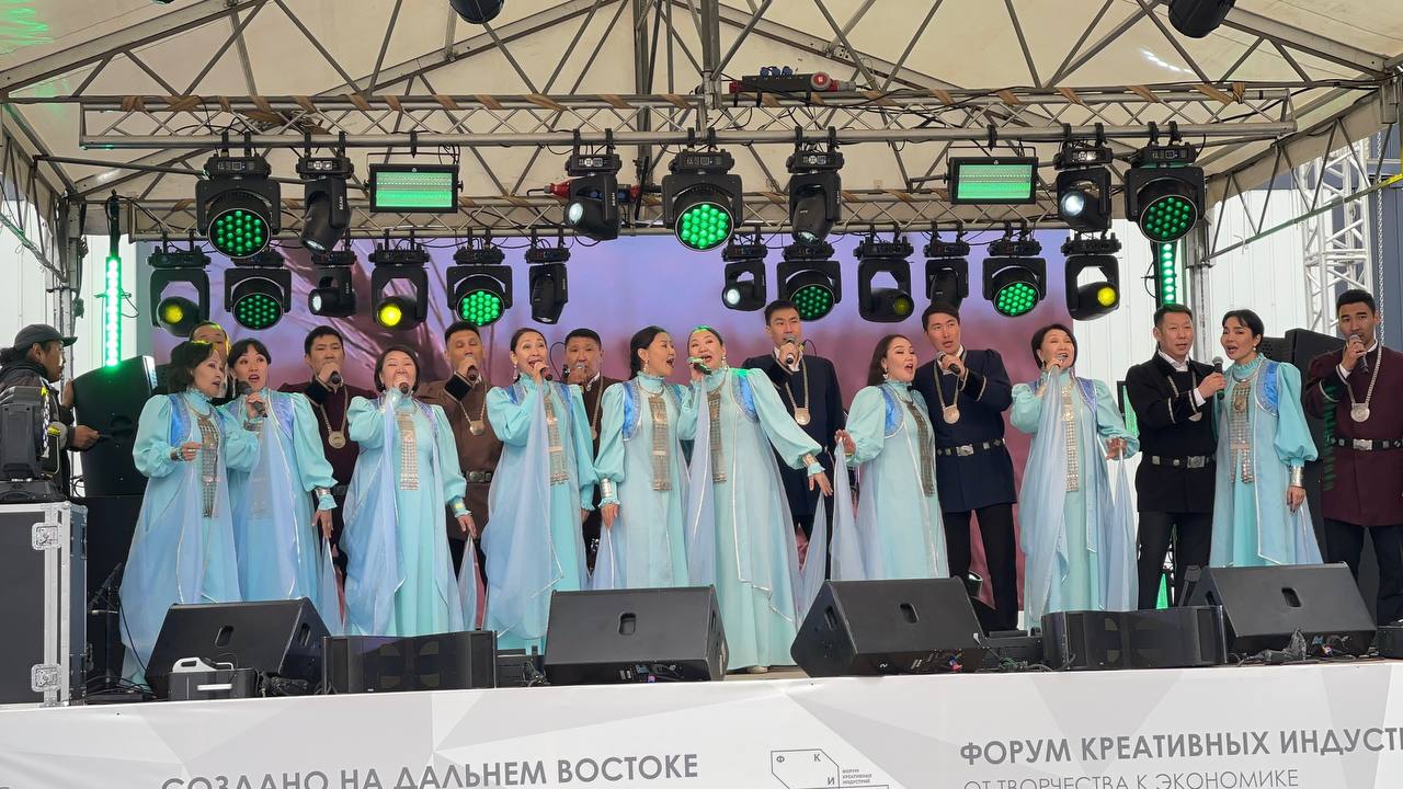 30 мая в кластере «Квартал Труда» прошел праздничный концерт «Поет земля Олонхо» в рамке II Международного форума креативной индустрии «Создано на Дальнем Востоке: от творчества к экономике». Государственный вокальный ансамбль «Туймаада» подарили всем гостям и участникам форума концертные номера.