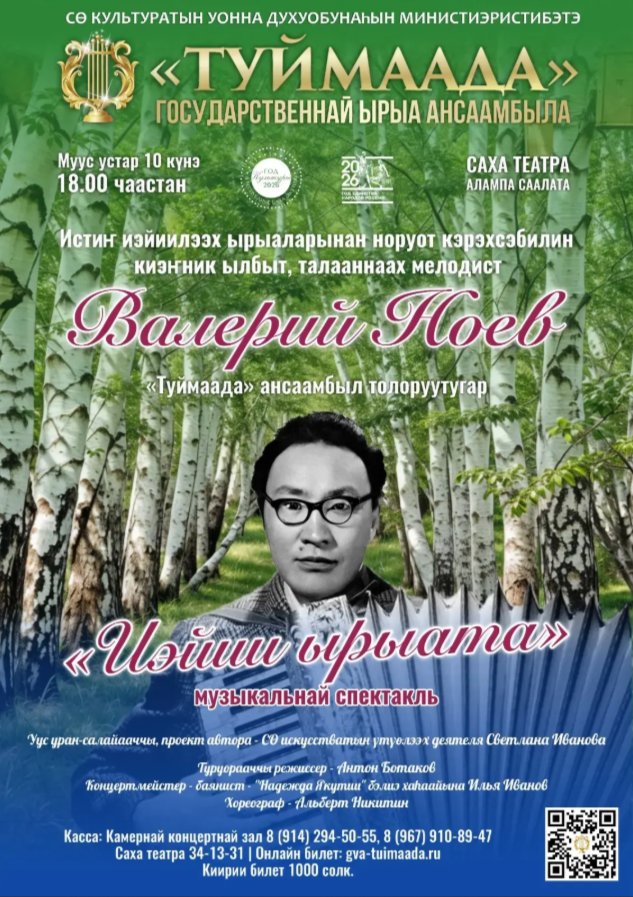 Истин иэйиилээх ырыаларынан норуот кэрэхсэбилин киэнник ылбыт, талааннаах мелодист Валерий Ноев ырыаларынан «Туймаада» ансаамбыл толоруутугар «Иэйии ырыата» театрализованнай туруоруу!